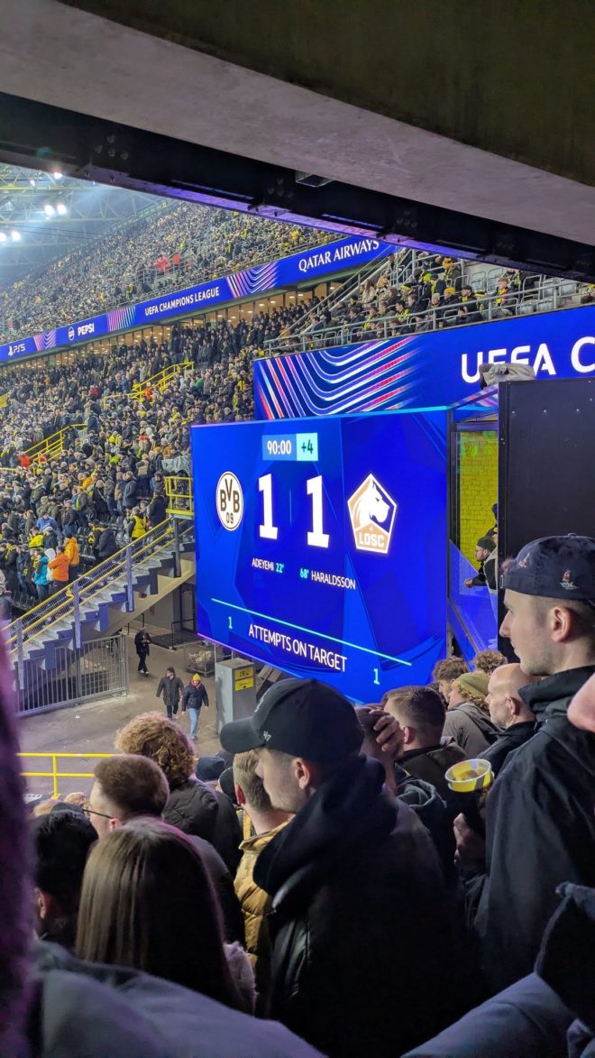 Beim CL Achtelfinale gegen Lille gibt’s nur ein 1:1. Der Fanclub war auch wieder mit einem Bus und über 40 Personen im Westfalenstadion.